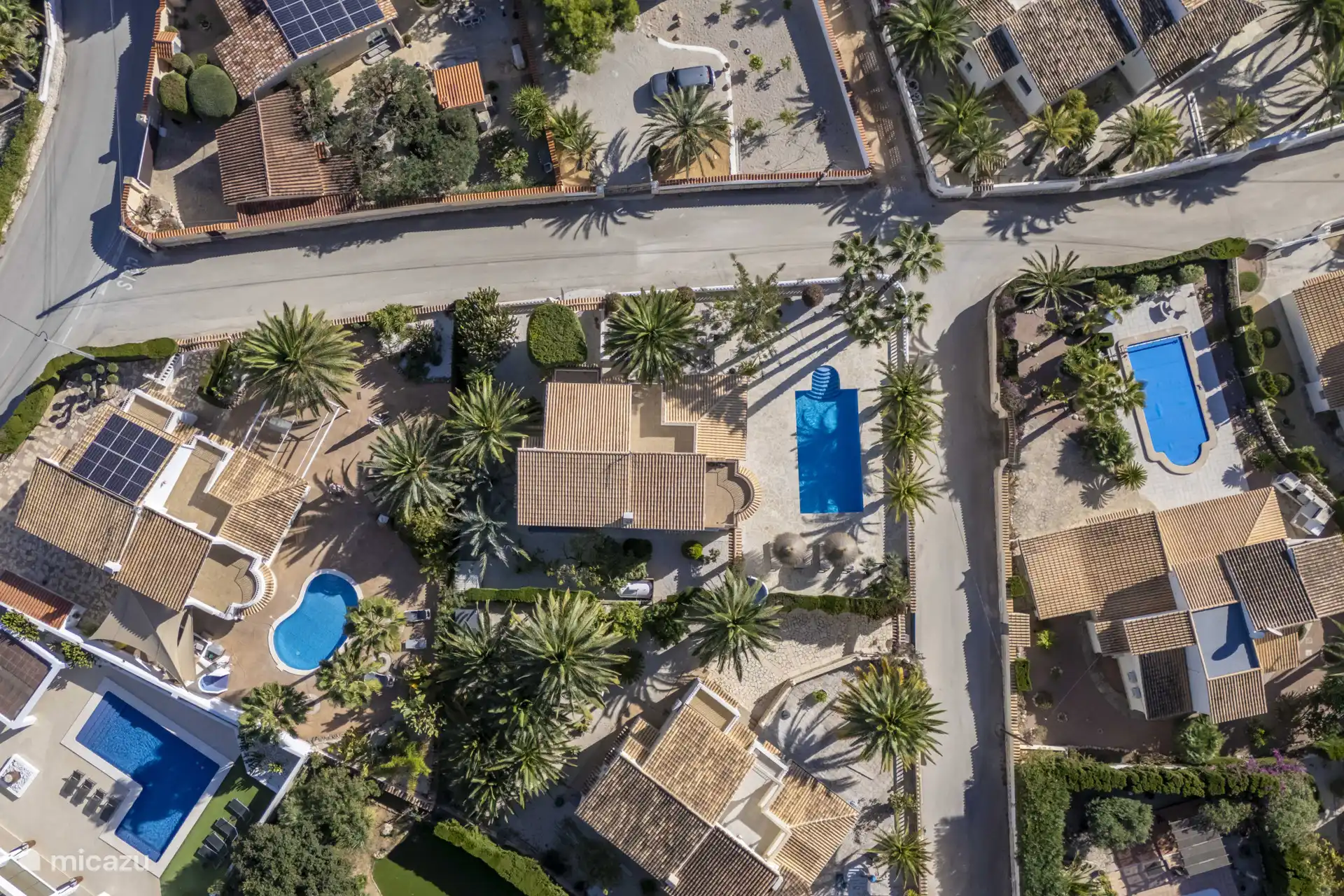 Casa Shanti befindet sich auf einem geräumigen Grundstück von 1000 m2 und erstreckt sich über 2 Etagen. Das Grundstück befindet sich auf einem Hügel, so dass es einen Höhenunterschied und mehrere Treppen gibt. Durch die Haustür betreten Sie den geräumigen Flur mit Büro, das Wohnzimmer mit Treppe zum Erdgeschoss, die offene Küche und 2 Schlafzimmer und 2 Bäder. Hier befindet sich auch die überdachte Terrasse, die Naya, mit Blick auf den Pool, das umliegende Grün und ein Stück Meer. Im Erdgeschoss befinden sich 2 Schlafzimmer mit Gemeinschaftsbad und ein separates WC. Und die Speisekammer mit Waschmaschine und Trockner. Die 2 Schlafzimmer haben Zugang zur Poolterrasse.