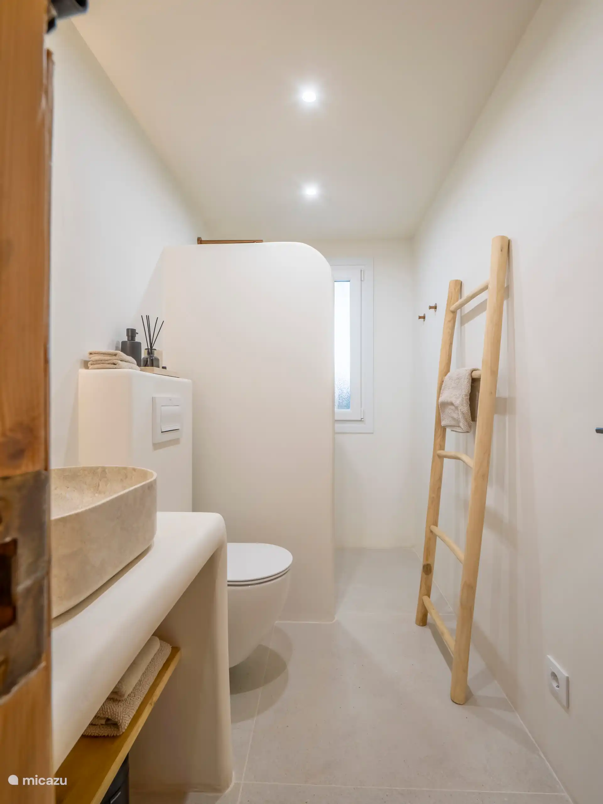 Im Flur befindet sich auch eine separate Toilette mit Waschbecken. Alle Betten haben die gleichen dicken Taschenfederkernmatratzen, die für das warme spanische Klima geeignet sind, die Betten im Obergeschoss befinden sich auf einer Box und im Erdgeschoss befinden sich Holzbetten. Die Betten sind mit herrlich cooler Baumwollbettwäsche ausgestattet. Auf Wunsch können ein Babybett und ein Hochstuhl gegen Gebühr hinzugefügt werden. Im Erdgeschoss ist die Speisekammer mit Waschmaschine und Trockner ausgestattet.