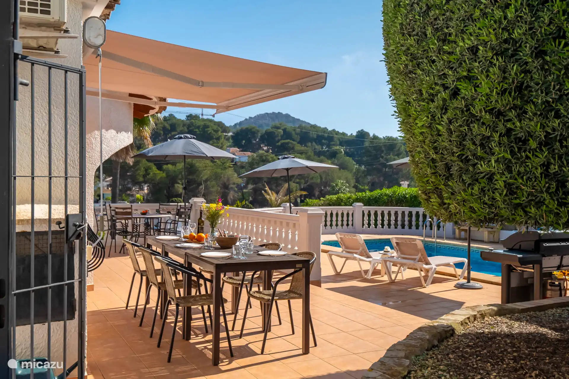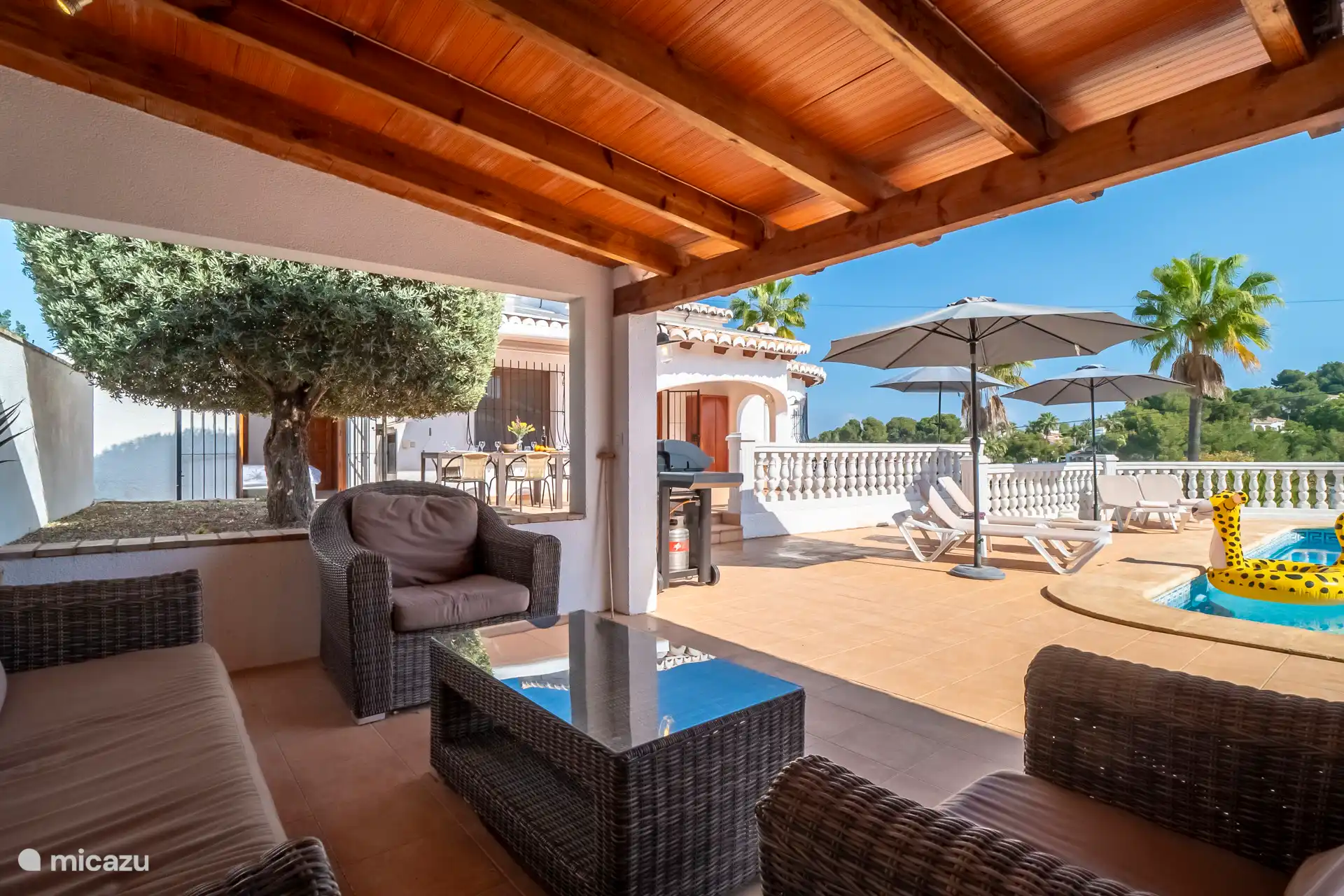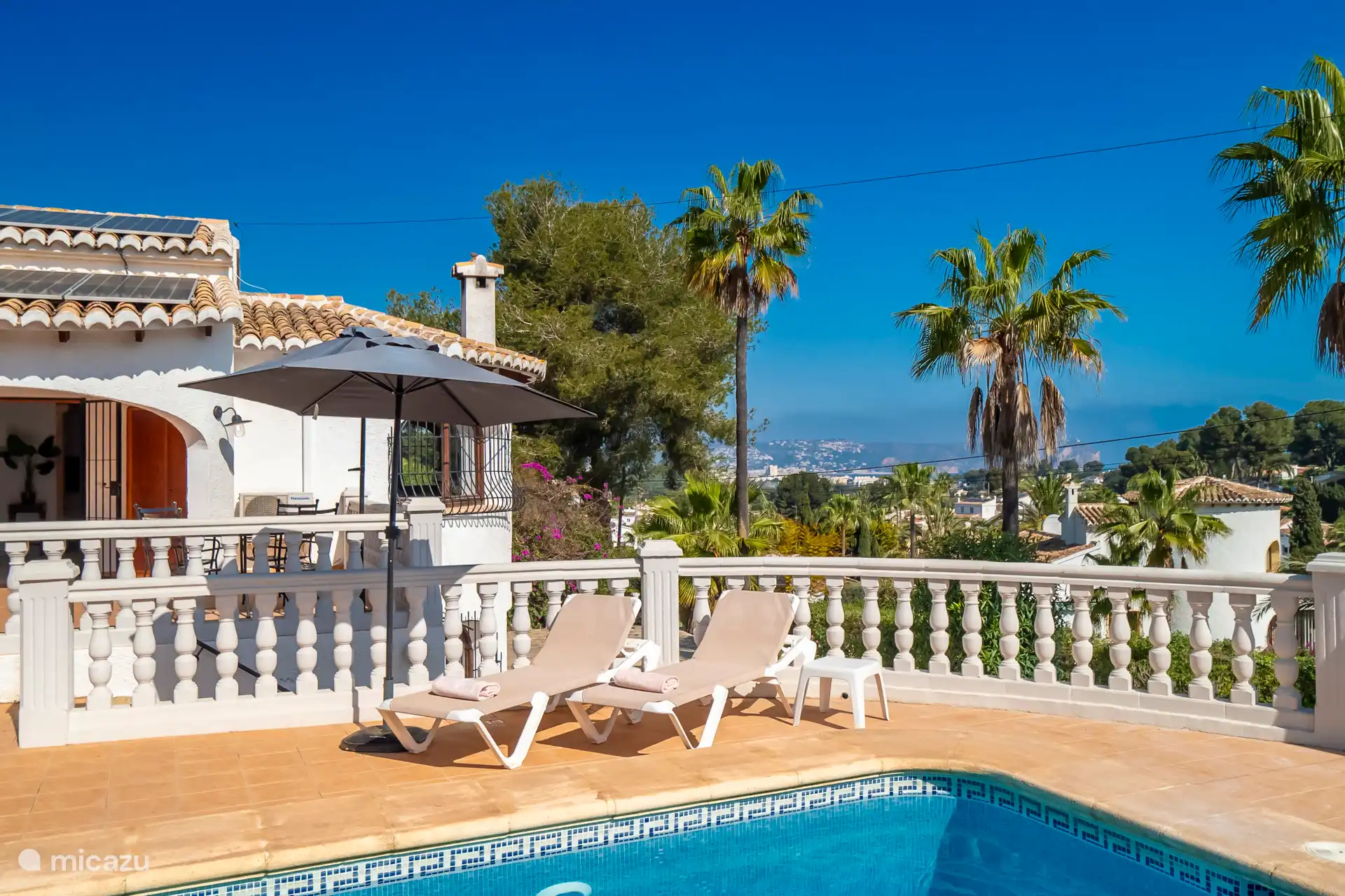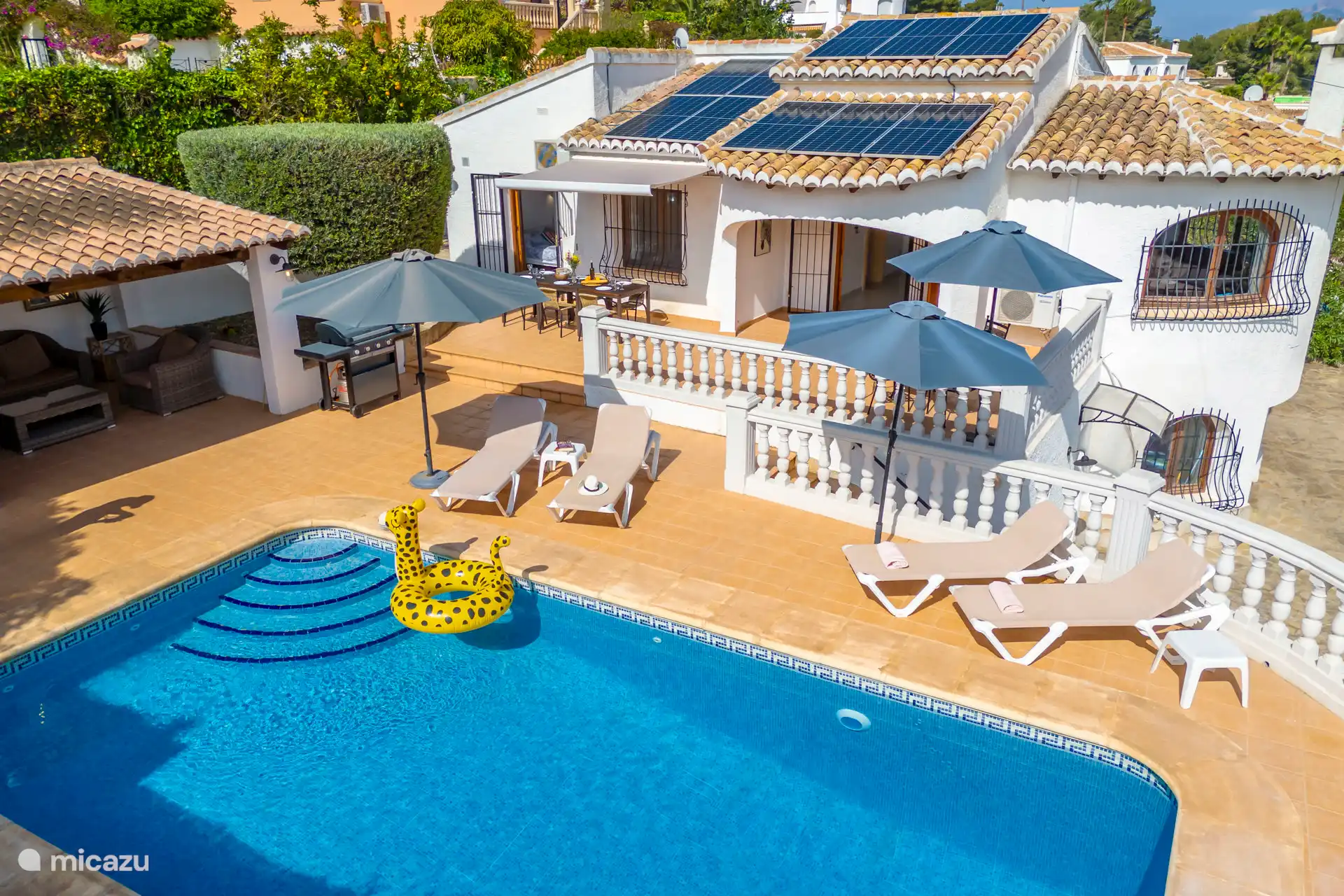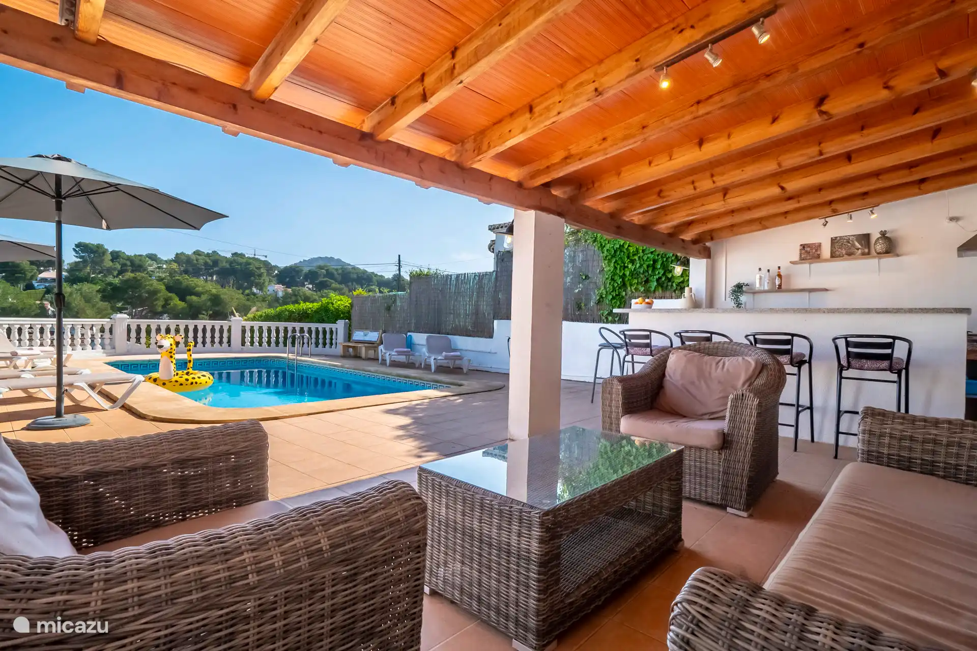 Liegend auf einer bequemen Liege rund um den privaten Pool, der auf Wunsch beheizt werden kann, kann man die spanische Sonne genießen. Es gibt insgesamt sechs Sonnenbetten. Die Außenküche mit Blick auf den Pool verfügt über eine Bar, einen Kühlschrank, einen 2-Herd mit zwei Kochplatten und ein schönes Lounge-Set. Parkplätze sind vor Ort verfügbar.