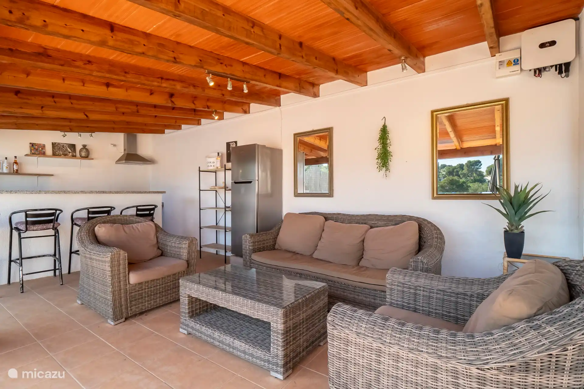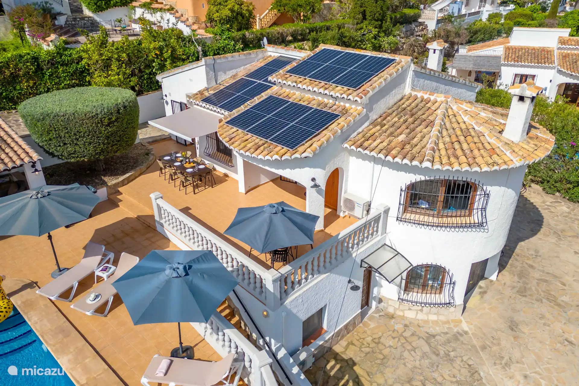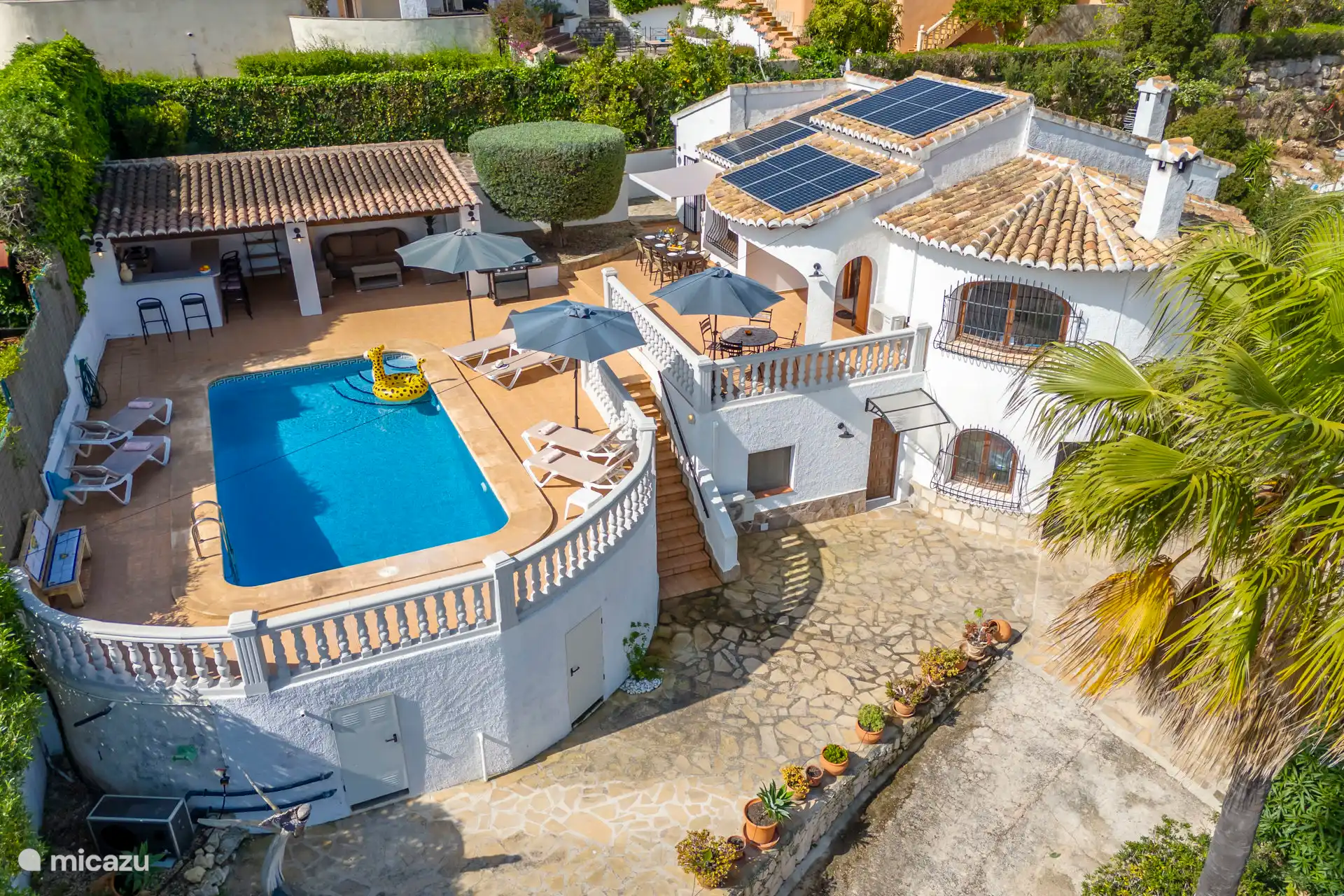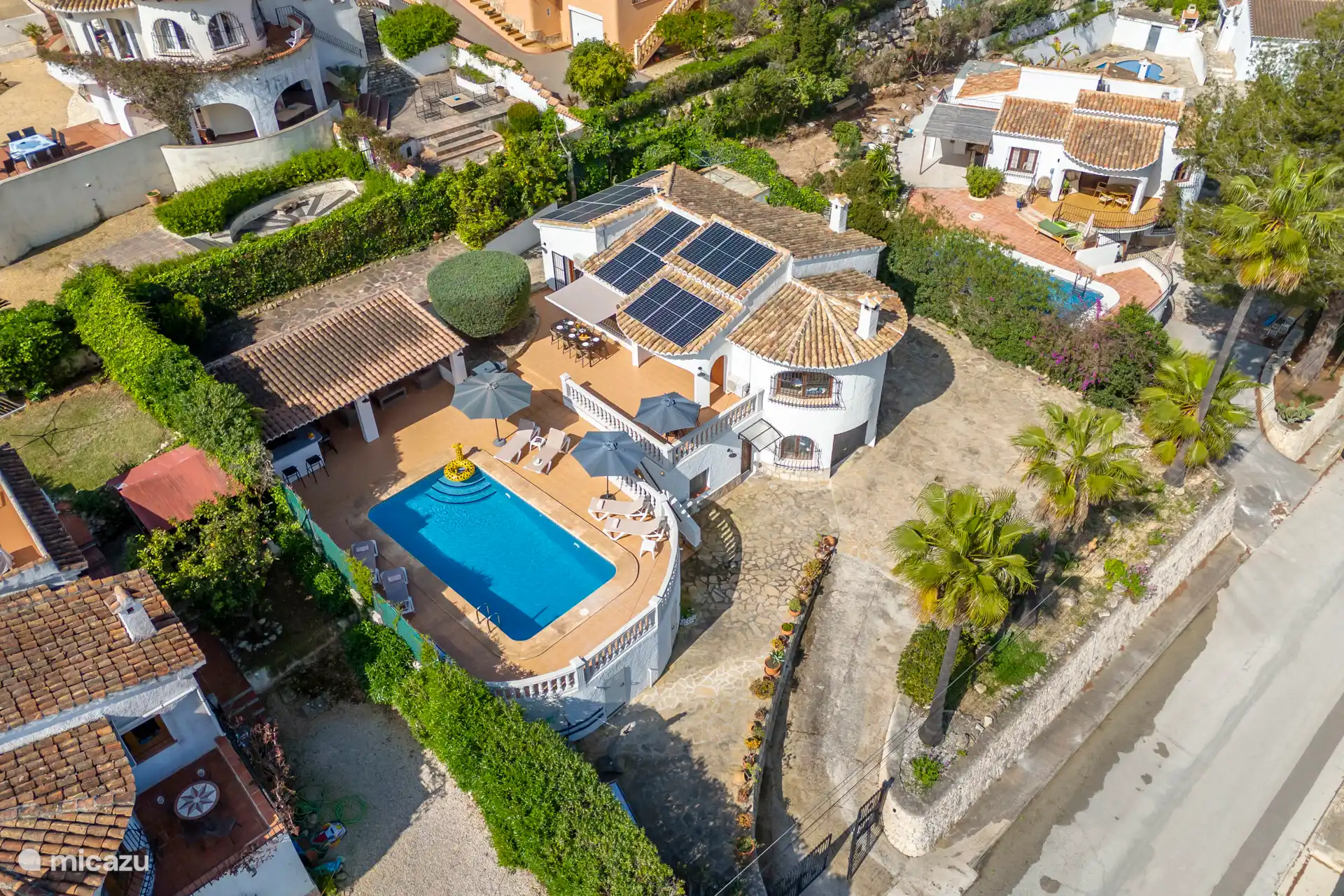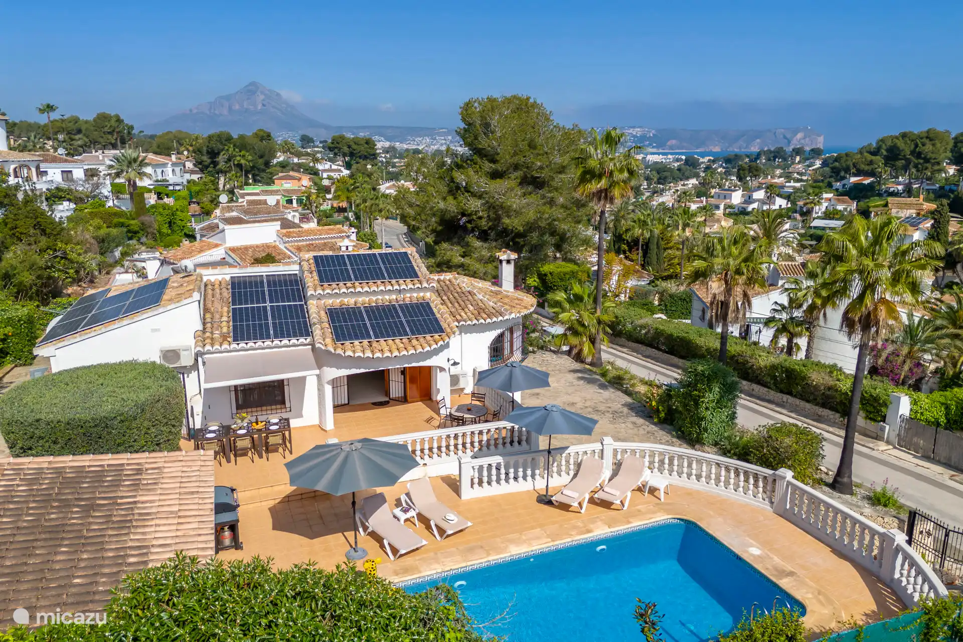 Liegend auf einer bequemen Liege rund um den privaten Pool, der auf Wunsch beheizt werden kann, kann man die spanische Sonne genießen. Es gibt insgesamt sechs Sonnenbetten. Die Außenküche mit Blick auf den Pool verfügt über eine Bar, einen Kühlschrank, einen 2-Herd mit zwei Kochplatten und ein schönes Lounge-Set. Parkplätze sind vor Ort verfügbar.
