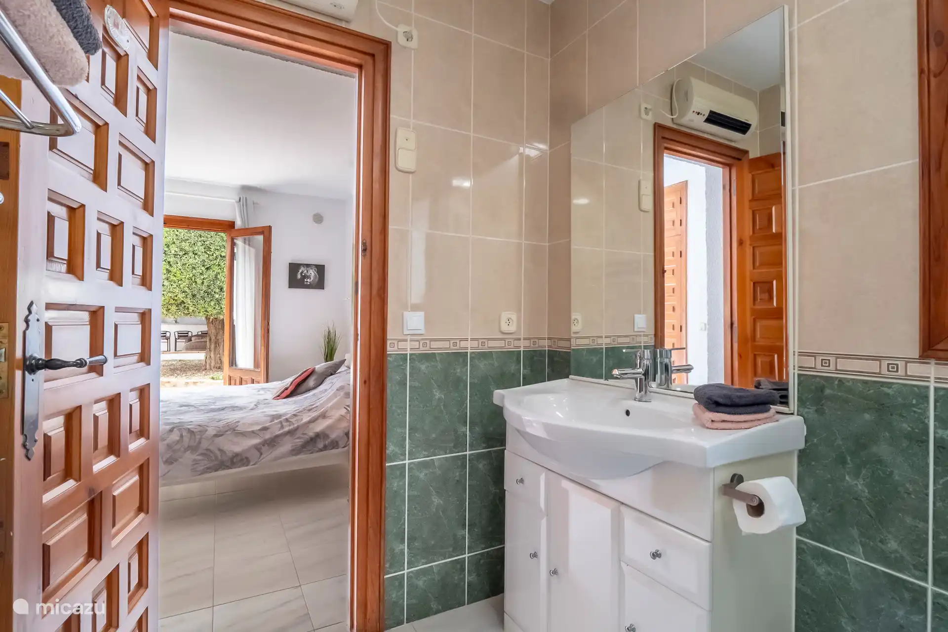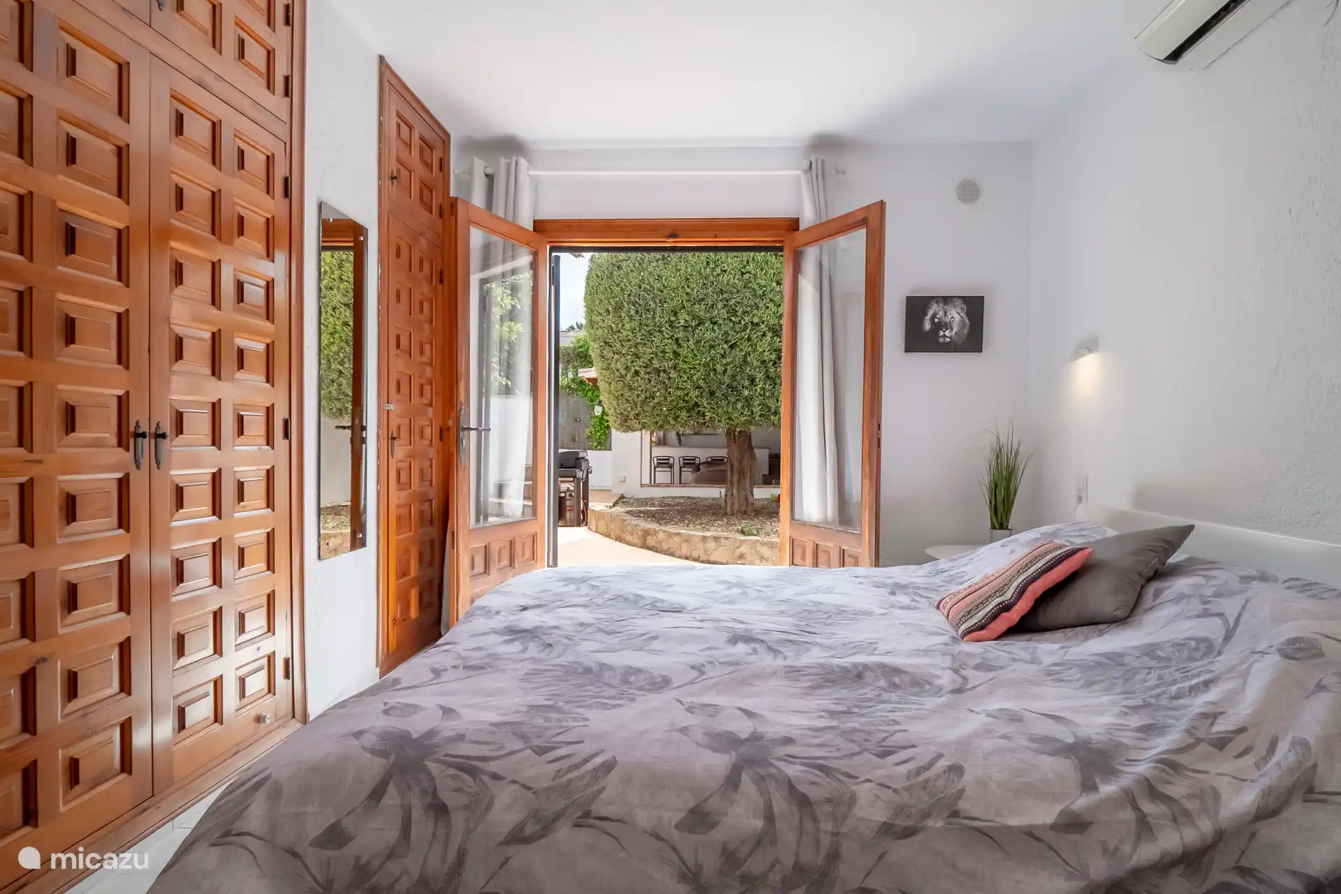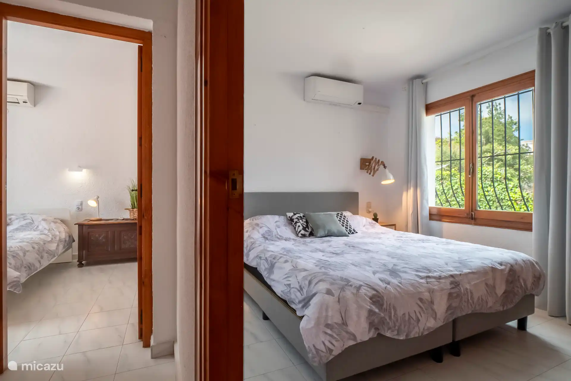 Drinnen ist es angenehm zu übernachten, es gibt ein gemütliches Wohnzimmer mit Sitzecke und Fernseher. Die gut ausgestattete Küche verfügt über einen Ofen, eine Mikrowelle, eine Spülmaschine und eine Kaffeemaschine. Das Ferienhaus verfügt über 3 Schlafzimmer und 2 Badezimmer, beide mit Dusche und Toilette. Sowohl das Wohnzimmer als auch die Schlafzimmer sind klimatisiert, sodass auch das Ferienhaus in den Sommermonaten kühlt.