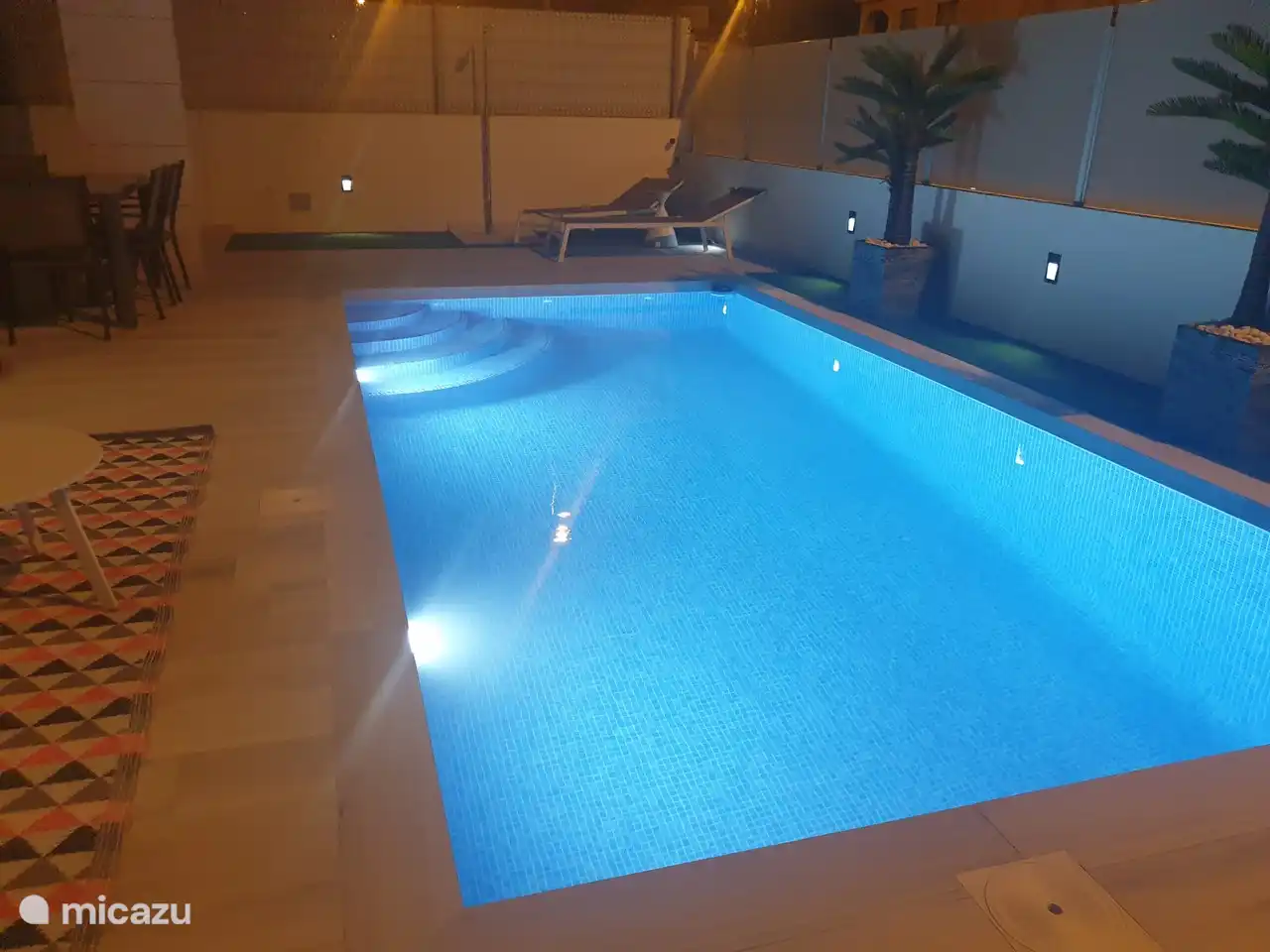 Sie haben dieses Haus aus Ihren Favoriten entfernt. Last Minute ferienhaus, Mil Palmeras, Costa Blanca, Spanien - Casa Doppen Die Außenterrasse ist den ganzen Tag schön. Die Sonne ist es früh am Morgen, und alles, was bleibt, bis er ausfällt. Offensichtlich macht die Gartenmöbel für schönen Aufenthalt; Tisch mit 6 Stühlen, 2 Liegestühle und 2 Liegen, die das Dach für Schatten bieten können. Das luxuriöse Designer-Interieur ist komplett ausgestattet, darunter eine luxuriöse Esstisch mit 6 Stühlen. In der Küche mit Ceranfeld, Backofen, Mikrowelle und Geschirrspüler enthalten. Der Sitzbereich besteht aus einem (Lüge) + Einzelschlafsesseln entspannen. Weiterhin ist ein Breitbild-TV mit Canal Digital. Es ist in diesem geräumigen Wohnzimmer eine Klimaanlage / Heizung, im Sommer wie im Winter sorgt für eine angenehme Temperatur. Es gibt 3 Schlafzimmer, die alle modern eingerichtet und mit einem geräumigen Kleiderschrank ausgestattet sind. Bei der 2-Personen-Schlafzimmer ist eine Klimaanlage. Die beiden Badezimmer sind besonders funktionelle und beide sind auch neben einer Toilette mit Waschbecken und Dusche. Der Pool ist mit ± 20 anderen Familien geteilt. Dies macht es auch ruhig, aber es ist immer noch der Geselligkeit zu sprechen. Es gibt sowohl ein Erwachsener (tief) als Kinderbereich. Es gibt eine große Liegewiese zum Sonnenbaden. Es gibt mehrere Strände, alles befindet sich nur 5 Autominuten entfernt. Diese werden selbstverständlich mit aller Sommer Wünsche, wie Cafés, Restaurants und Spielgeräte für Kinder ausgestattet. Für die Liebhaber gibt es eine Strecke von 7 km entlang der Küste. Dies ist bei der Gemeinde Orihuela-Costa wunderschön gestalteten und führt durch verschiedene Wege entlang Klippen und vielen anderen natürlichen Elementen. In der Gegend gibt es den großen Städten, die alle ihre Sehenswürdigkeiten. Es ist die "alte" Murcia, die "modernen" Alicante, die Hafenstadt Cartagena und Elche mit seinen botanischen Gärten. Außerdem in der Nähe der Stadt Torrevieja mit Hafen und mehrmals pro Woche einen großen Markt entfernt. Die (neue) Terrasse hat eine große Fläche, die ohne Höhenunterschied vom Haus aus zu erreichen ist. Casa Doppen 8,3 Spanien Costa Blanca Orihuela Costa 1-6 Personen 3 Schlafzimmer 20 Bewertungen Nachtpreis ab Pro Woche (7 Nächte): € 420,- Nachtpreis ab € 60,-