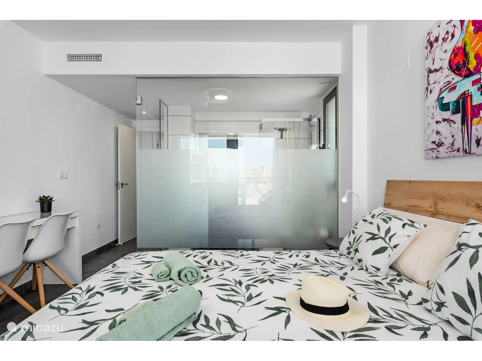 - Schlafzimmer mit Klimaanlage und Kingsize-Bett (200 x 180 cm)