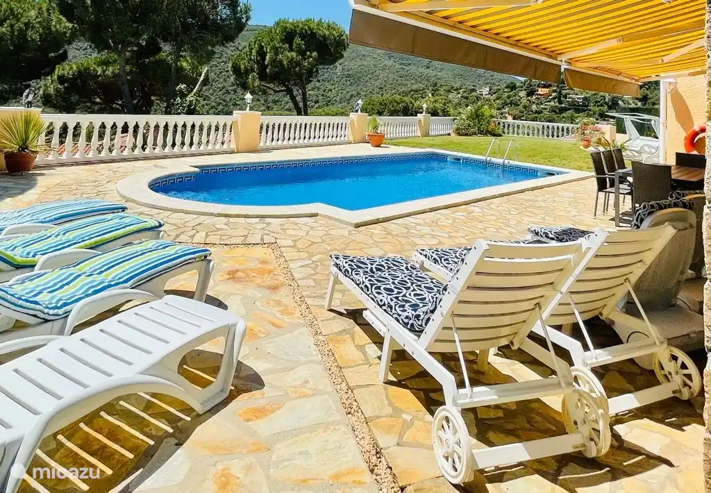 Villa in einer ruhigen Gegend, 5 Autominuten vom Dorf Calonge entfernt. Verteilt auf einer Etage, mit Klimaanlage in den Schlafzimmern, dem Wohnzimmer und der Küche, und sein großer Garten macht es ideal für einen Familienurlaub mit Kindern: Es verfügt über 3 Schlafzimmer (zwei Doppelzimmer und eines mit zwei Einzelbetten), ein großes Wohnzimmer mit offener und voll ausgestatteter Küche und zwei komplette Badezimmer. Der Garten befindet sich hinter dem Haus und bietet absolute Privatsphäre.