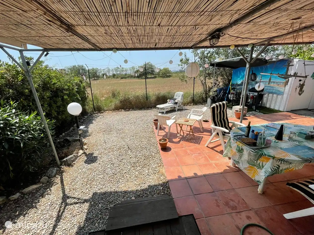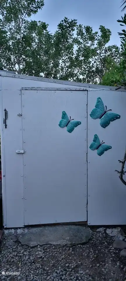 Schipper75 befindet sich in einer einzigartigen Lage mit freiem Blick und absoluter Privatsphäre. Sie sehen, sozusagen mit dem Rücken zum Campingplatz. Auf diese Weise können Sie selbst nach der Gemütlichkeit suchen oder eine anständige geflieste Terrasse mit einem Kiesgarten von ca. 15m2 rundum und einem Kunstrasen mit Gasgrill genießen.