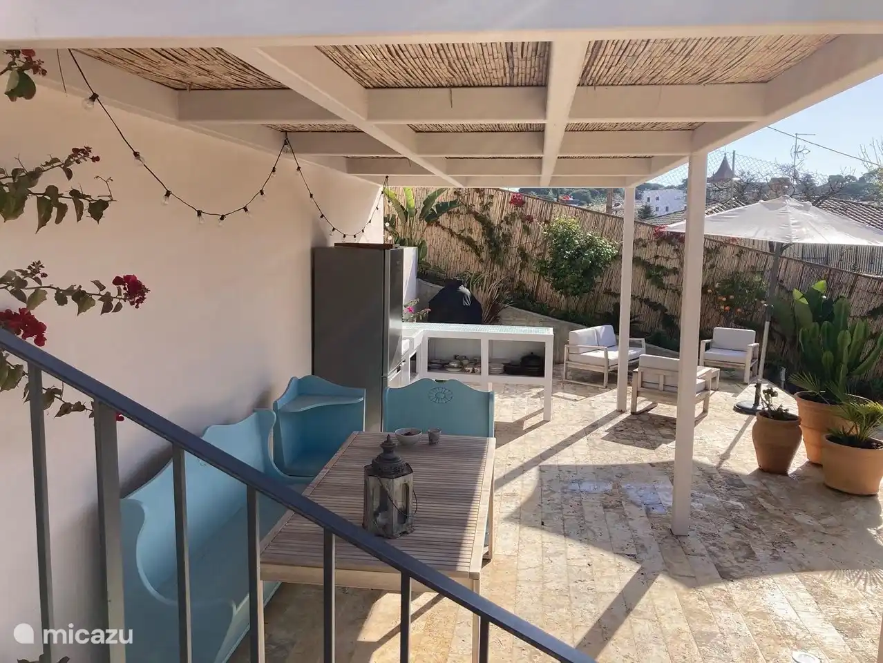 Und ein Getränk lässt sich ganz einfach aus dem Kühlschrank der Außenküche holen. Die Poolterrasse wird mit der anderen Wohnung und unserer Familie geteilt.