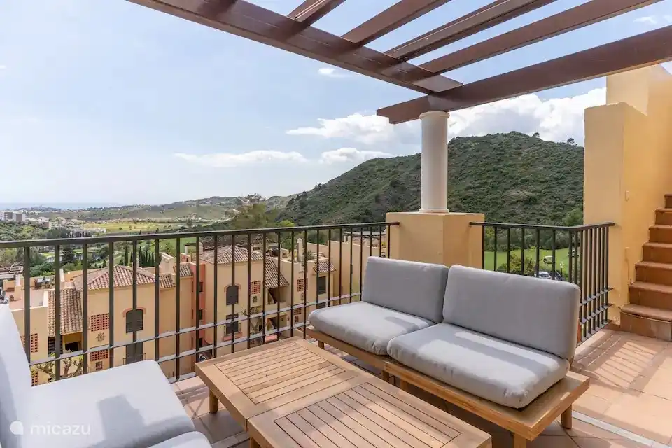 Sie haben dieses Haus aus Ihren Favoriten entfernt. Last Minute appartement, San Pedro de Alcántara, Costa del Sol, Spanien - Casa Colivia Schöne Panorama-Wohnung im ersten Stock mit schönem Blick auf das Meer und über den Golfplatz und das Tal. Das Apartment verfügt über einen geräumigen Balkon und eine hintere Terrasse mit einem Lounge-Sofa. Panoramablick. Sehr helles, sonniges Wohnzimmer mit großem Smart-TV mit Chromecast für viele Kanäle. Und mega schnelles WLAN. Vom Wohnzimmer aus hat man auch einen Blick auf den schönen Pool. Esstisch für 4 Personen. Blick auf den Pool. Balkon mit großer Markise. Schöner Essbereich, um gemütliche Abende zu verbringen. Feine Küche. Schlafzimmer 1: mit Doppelbett, schönes, komfortables Zimmer mit viel Stauraum. Schlafzimmer 1 mit viel Stauraum. Schlafzimmer 1: Bett für 2 Personen. Sehr leicht und bequem. Schlafzimmer 1 Schlafzimmer 1 : mit Kingsize-Doppelbett Schlafzimmer 2; 2 Einzelbetten. Schlafzimmer 2: Viel Stauraum im Schrank. Schlafzimmer 1 mit Bad, Badewanne und WC. Flur zu Schlafzimmern und Bädern. Badezimmer 2: Dusche, WC und Waschbecken. Badezimmer 1: Bad, WC und Waschbecken mit viel Stauraum. Schöne Badezimmer mit schöner Badewäsche. Terrasse mit herrlichem Blick auf Garten und Tal. Hintere Terrasse mit Lounge-Sofa mit Blick auf das Tal und den Hinterhof mit Obstbäumen. Entspannter Ort für den Abend zum Entspannen. Vor einer Terrasse mit Panoramablick und herrlich aufgehender Morgensonne, um mit Ihrer Tasse Kaffee aufzuwachen Schöne sonnige Terrasse, ausgestattet mit Markise. Schöner Balkon für ein leckeres Frühstück oder Abendessen. Genießen Sie die köstlichen spanischen Weine. Blick auf Pool und Golfplatz. Neben der Wohnung befindet sich der schöne Gemeinschaftspool. Vom Wohnzimmer aus sichtbar. Schöner ruhiger Gemeinschaftspool. Schöner Garten mit Obstbäumen. Panoramablick auf den Golfplatz Abends eine herrlich entspannte Atmosphäre! Schöner Sonnenaufgang vom Wohnzimmer aus. Strandclubs 10 Minuten mit dem Auto entfernt. Sie blicken von der Wohnung auf den Golfplatz El Paraiso und sind 3 Minuten entfernt. Die schönen Strände sind eine 8-minütige Autofahrt entfernt. Strandclub in der Entfernung 10 Minuten Fahrt. Golfclub El Paraiso Casa Colivia 9,1 Spanien Costa del Sol Benahavis 1-4 Personen 2 Schlafzimmer 2 Bewertungen Nachtpreis ab Pro Woche (7 Nächte): € 820,- Nachtpreis ab € 117,-