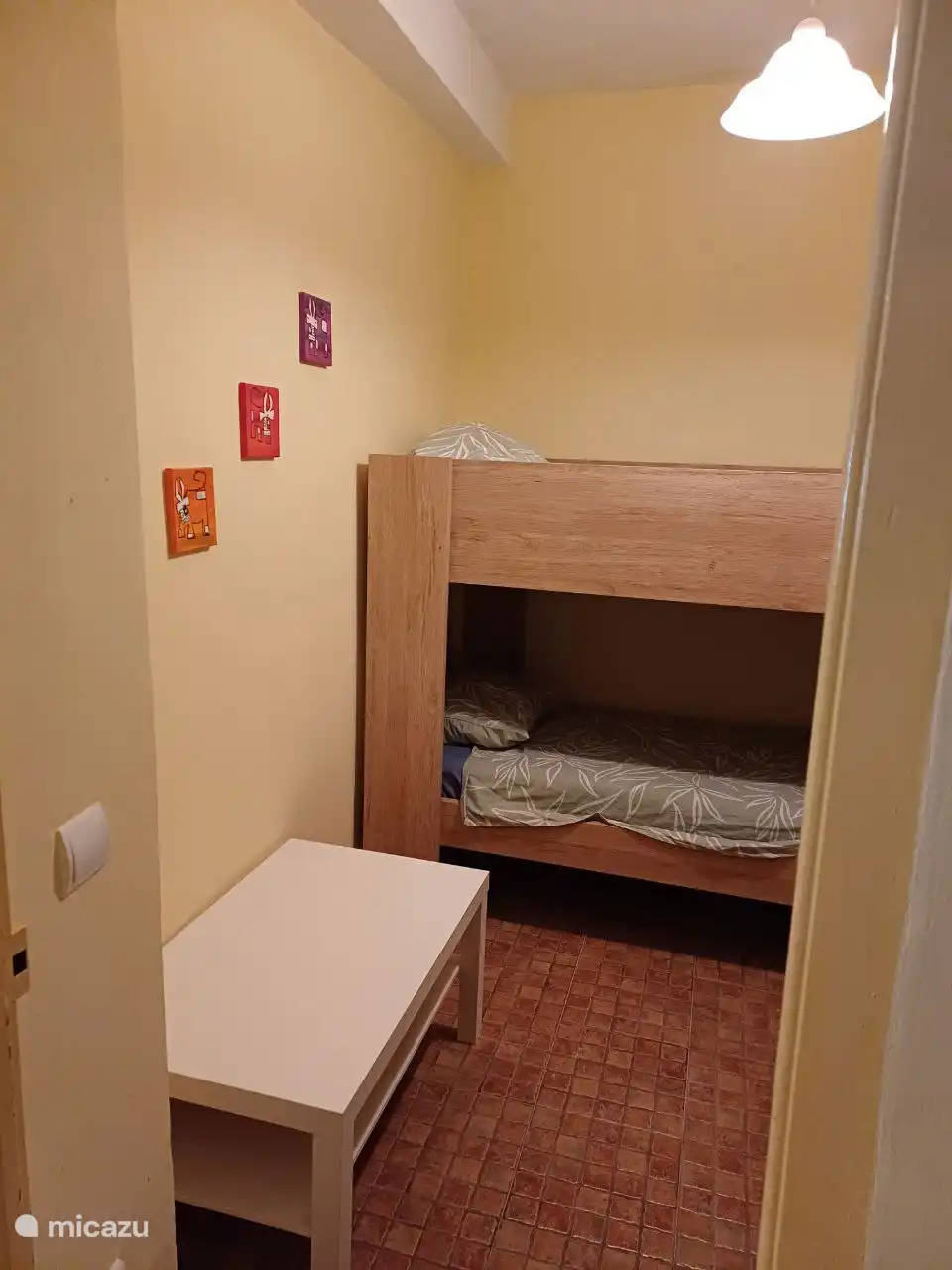 Sie betreten eine Küche mit einem angeschlossenen Essbereich . Durch einen Flur gelangt man in das kleine Schlafzimmer (mit Etagenbett und Kleiderschrank) und das Badezimmer (mit ebenerdiger Dusche, WC und Badmöbeln). Der Flur führt Sie schließlich in das Wohnzimmer mit einem kleinen Balkon (wo auch Wäsche aufgehängt werden kann). Die Tür zum Hauptschlafzimmer befindet sich im Wohnzimmer. Es gibt ein Video, das das meiste davon zeigt.