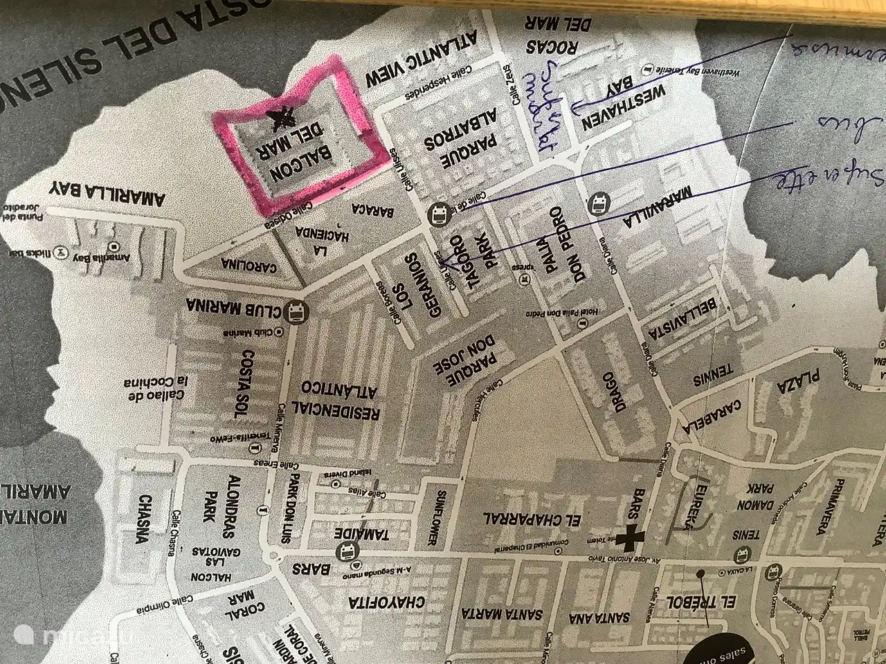 Auf etwa 250m. Von der Wohnung aus haben Sie eine Bushaltestelle mit Verbindung zur Südküste Los Christianos ist 9 km und Playa de Las Americas ist 11 km entfernt, der Flughafen Tenerife Sur ist 16 km entfernt.